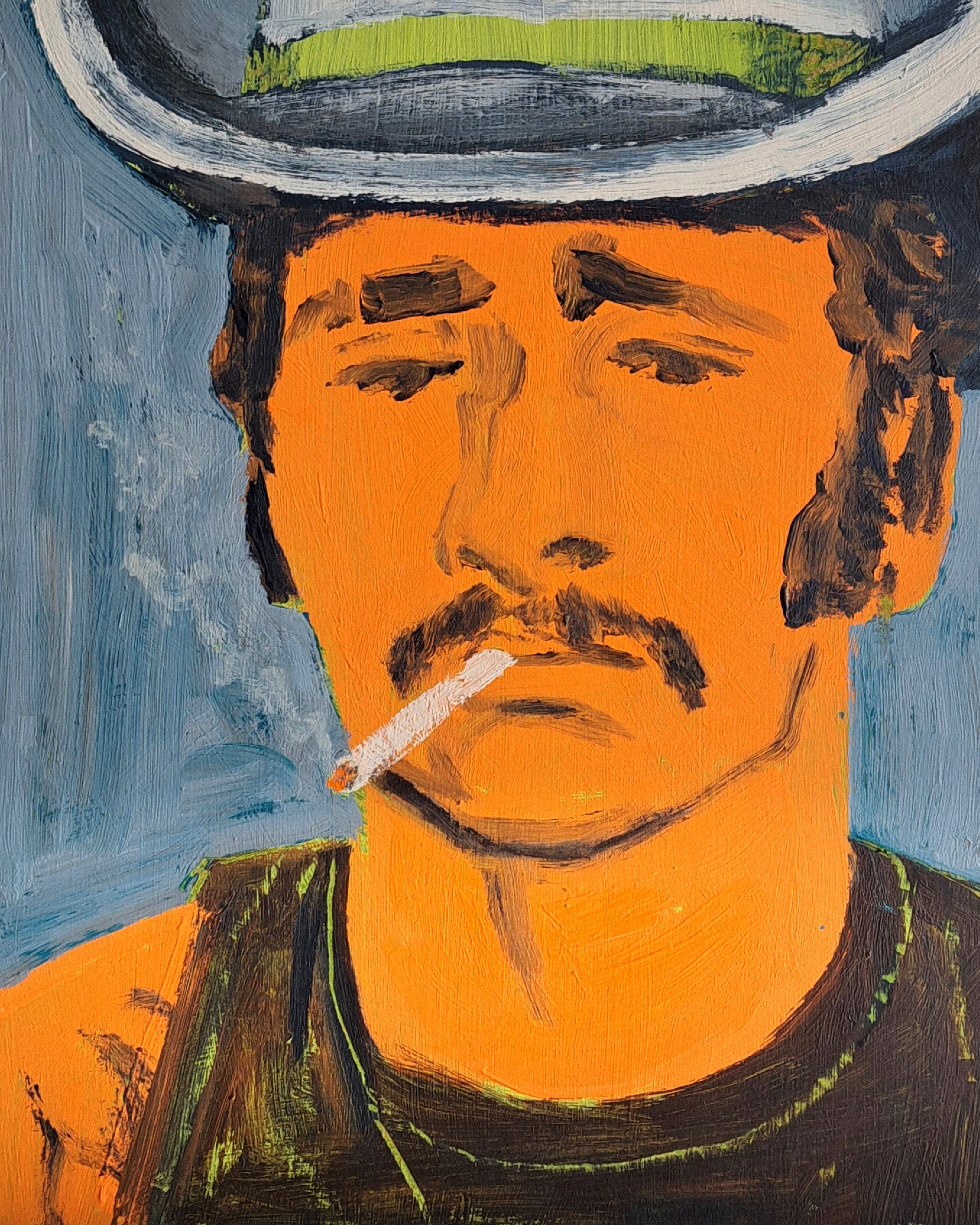 The shaving paintings, for example, started with a simple selfie I took after applying shaving cream to my face. At first, I didn’t think much of it, but after being surrounded by a few of them for a while, I started seeing the bigger context. Shaving has something very tough but on the other hand also kinda vain, silly even. At home men are meticulously lining up their mustaches and beards obsessing over little details. Shaving in movies always looks really cool but in reality it's a lot of cussing and correcting mistakes. And afterwards often thinking that it's crooked or you didn't do that good a job.