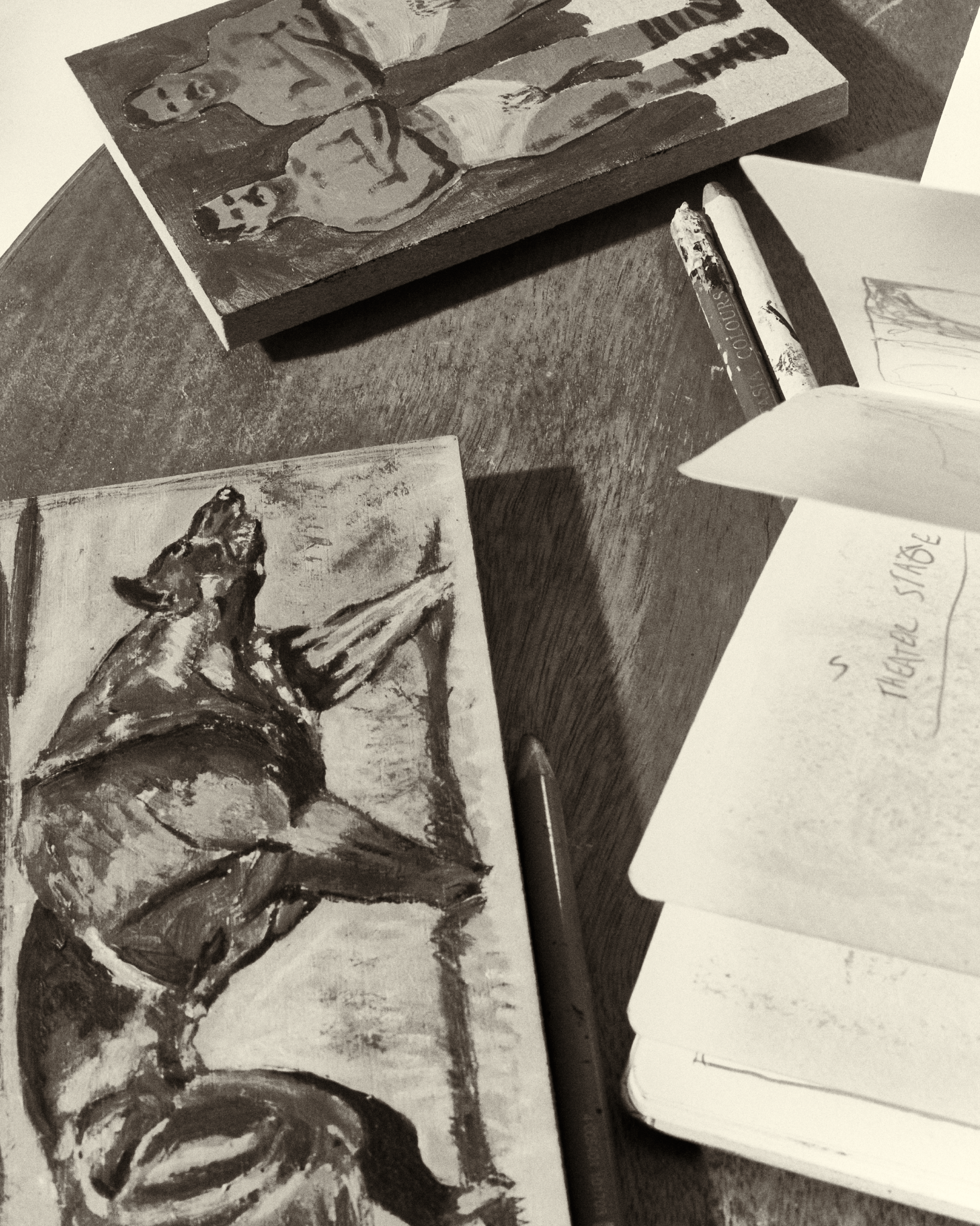 They usually start as a surprise or an ‘unknown.’ Quite often, I don’t know what these symbols mean to me when I first start making them. Intuitively, I get the urge to paint something specific, and only later—through painting and reflecting on it—do I figure out what it signifies. With this edition, for example, I just thought: What if I don’t paint their wrestling suits and just make it a tan line? After painting a few more similar images, I started realizing how much it plays with the perception of a man in sportswear versus nude.