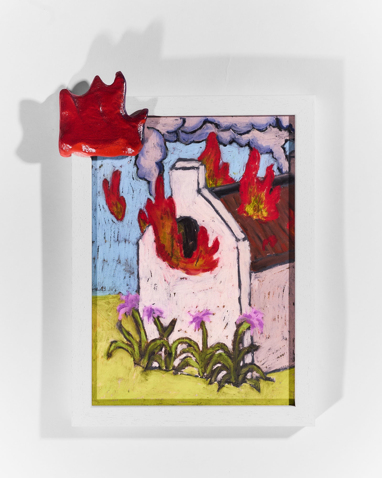 The original drawing is an image that constantly recurs in Michal Kruger's practice. It is somewhat based on a memory of his aunt's thatch-roof farmhouse burning down after being struck by lightning.