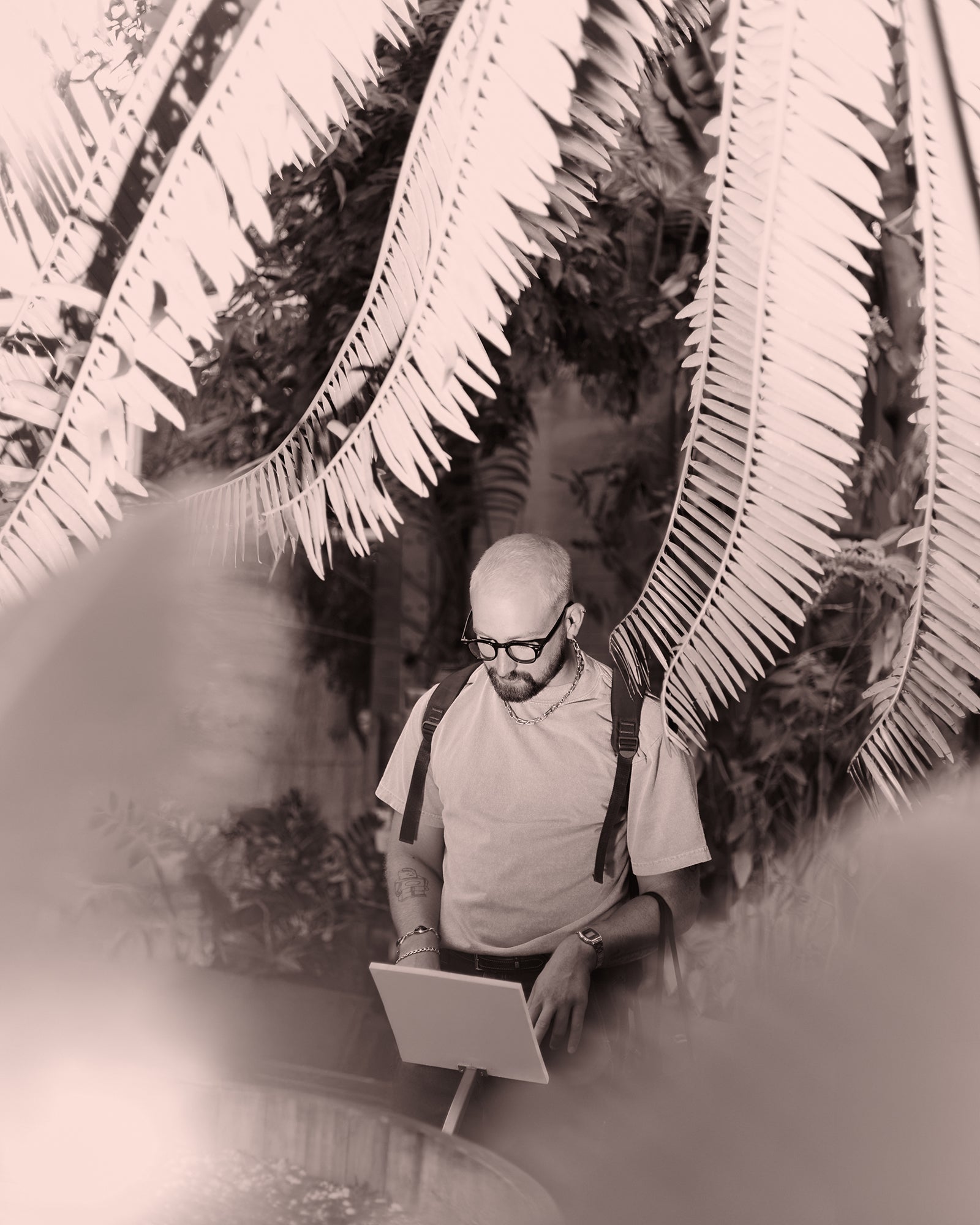 We meet Michal for a rainy-day walk through the Hortus Botanicus in Amsterdam, with hopes of visiting the South African section. Established in 1638, this corner of the garden is home to flora brought over by the Dutch East India Company. But on this day, instead of vibrant blossoms, we’re greeted by scaffolding — the section is in a sense ironically closed for renovations and is fenced off.