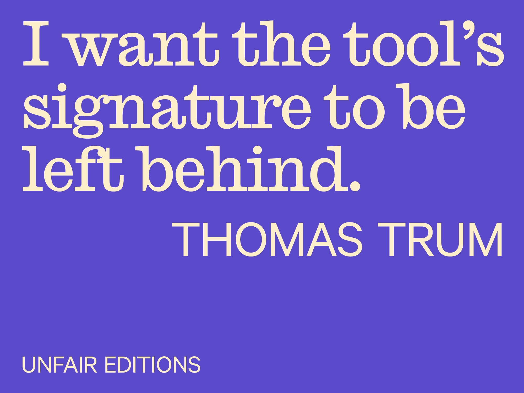Using self-created tools such as enlarged felt-tip pens and machines originally designed for marking roads or spray painting interiors, Trum creates monochromatic abstract works composed of single lines. The interplay between the line and its technical execution forms the foundation of his work. For Trum, it’s about effort over complexity when it comes to creating an image.